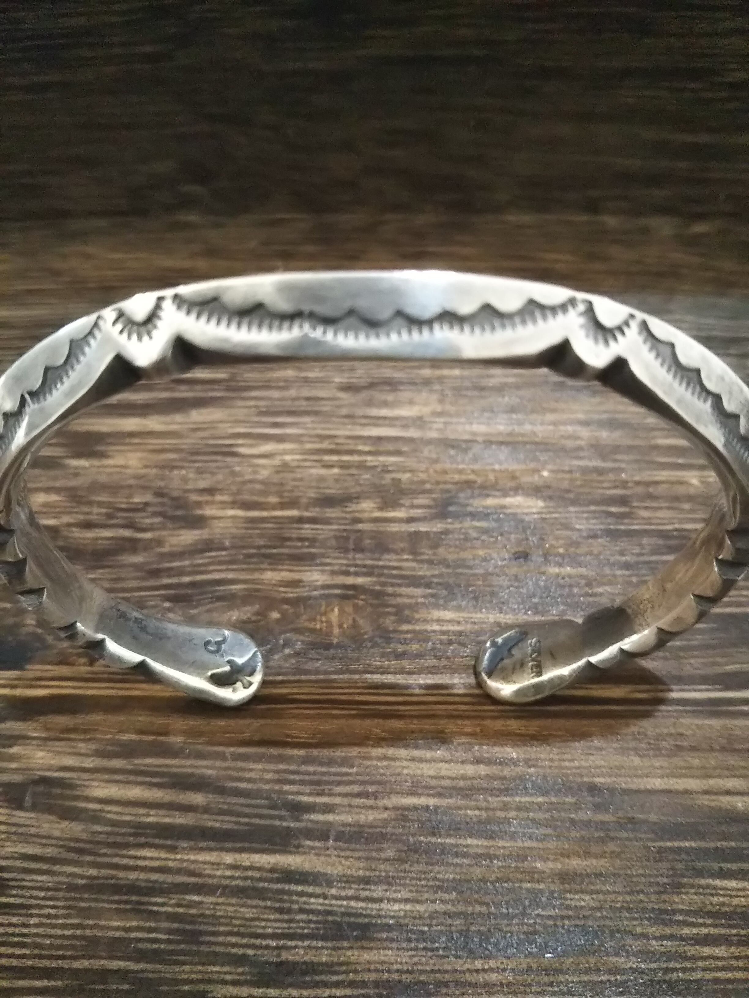 スタンプワークを施し柄に合わせて削りを施したバングル