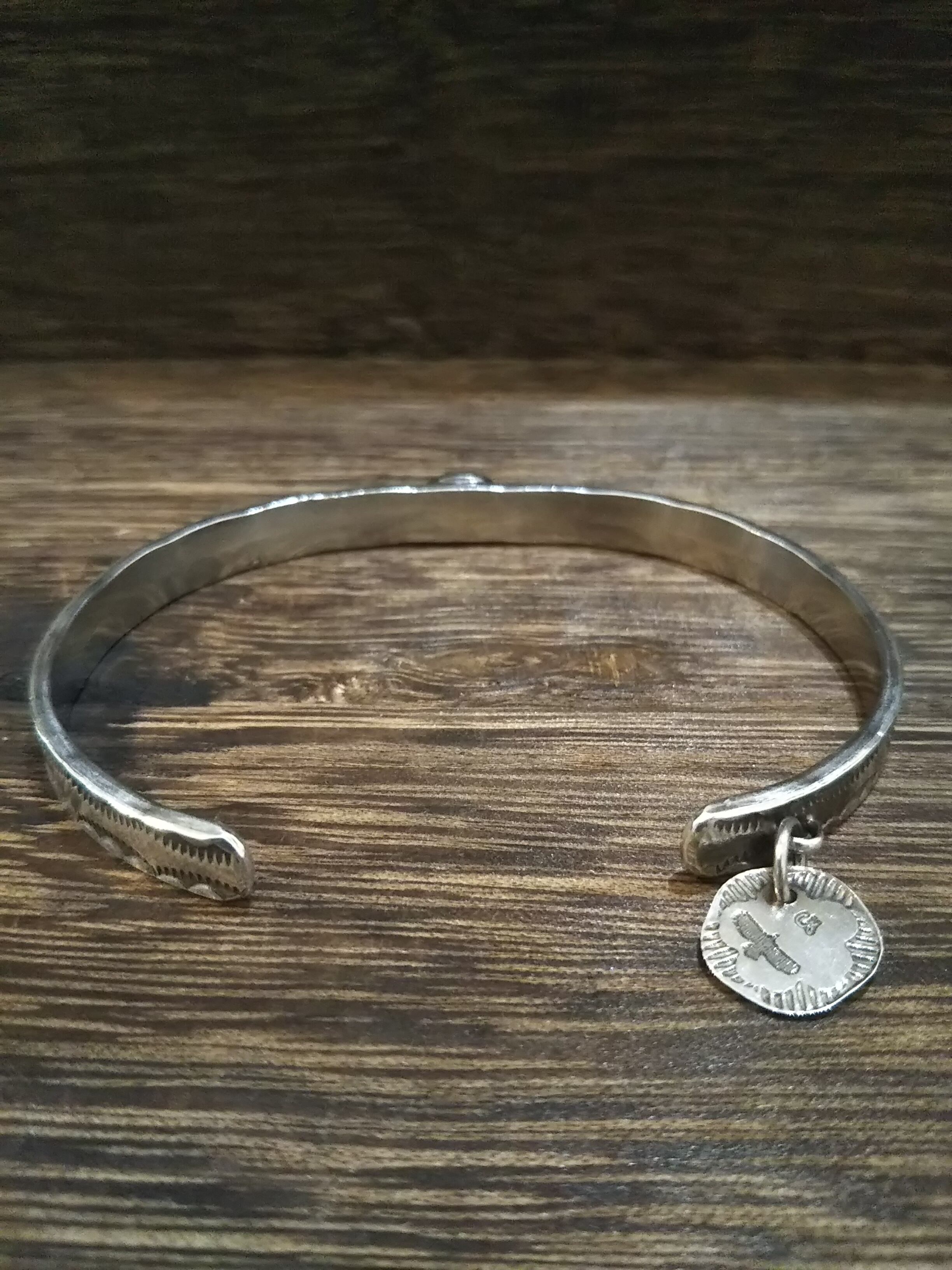 石はスリーピングビューティーターコイズでチャーム付きのバングル